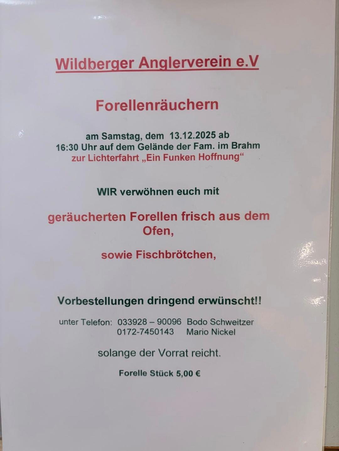 Vorbestellungen dringend erwünscht!! Bestellschluss 2.12.2025